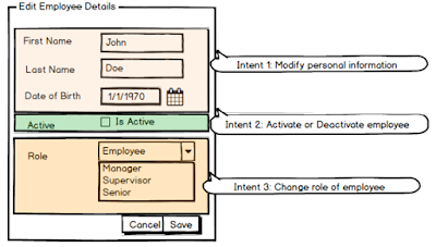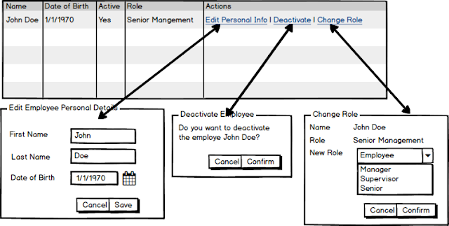 This type of UI is called as CRUD (create, read, updated, delete) based UI because a single screen is used for all the user intents (like activate, change role, etc) and it just act as an interface for database operations.